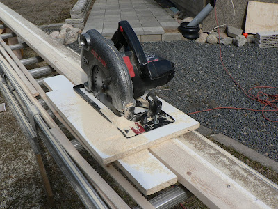 Blev lite märken av sågklingan på vissa ribbor riktigt i slutet av brädet då ribban fastna mellan klinga och sidoanslaget.Men det hela ska ju slipas ganska mycket sen så märken försvinner nog,kan ju försöka få dom inåt så gör det ej så mycket.Enklare att kapa av de skadade listerna för det är ju bara ca. 10 cm det gäller.