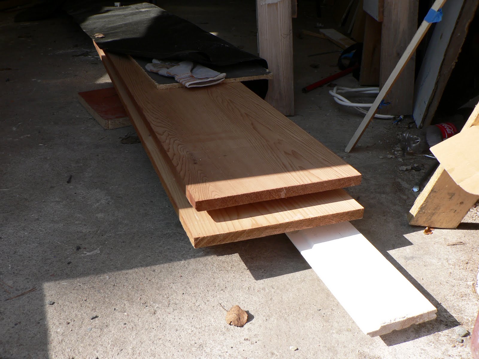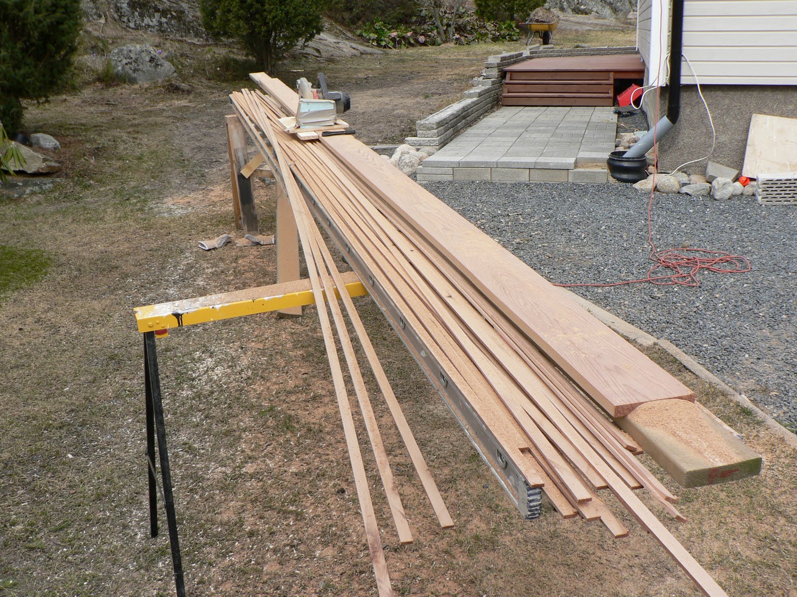 2 av brädena var lite mörkare och det sista lite ljusare, blir att fundera ut nåt mönster eller nåt system då kajaken ska "ribbas" så det blir nån ordning på det hela.