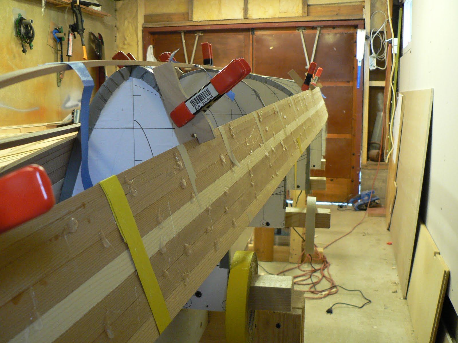 Några bilder av hela skrovet.Syns att kölribban har en liten avvikelse där på ett ställe, har nog ingen annan betydelse än estetisk, var nog rak-rakare då den sattes på plats, ,har säkert lyckats rubba den då de sista skrovribborna pressats på plats.